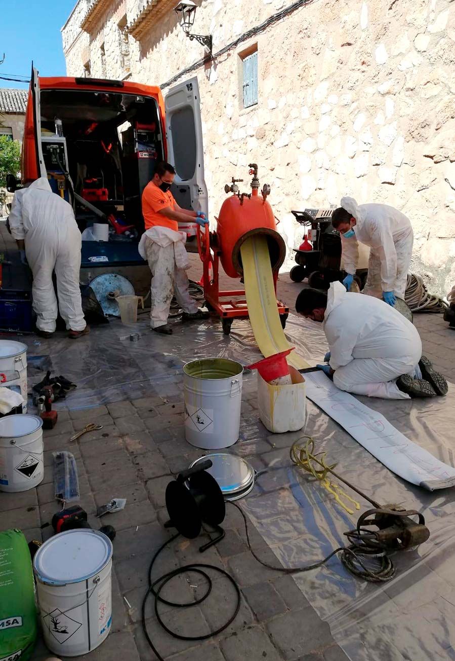Rehabilitación por manga total: se introduce de pozo a pozo una manga de fibra de vidrio impregnada en resinas epoxi que forman un tubo nuevo dejándolo otra vez listo para su uso.